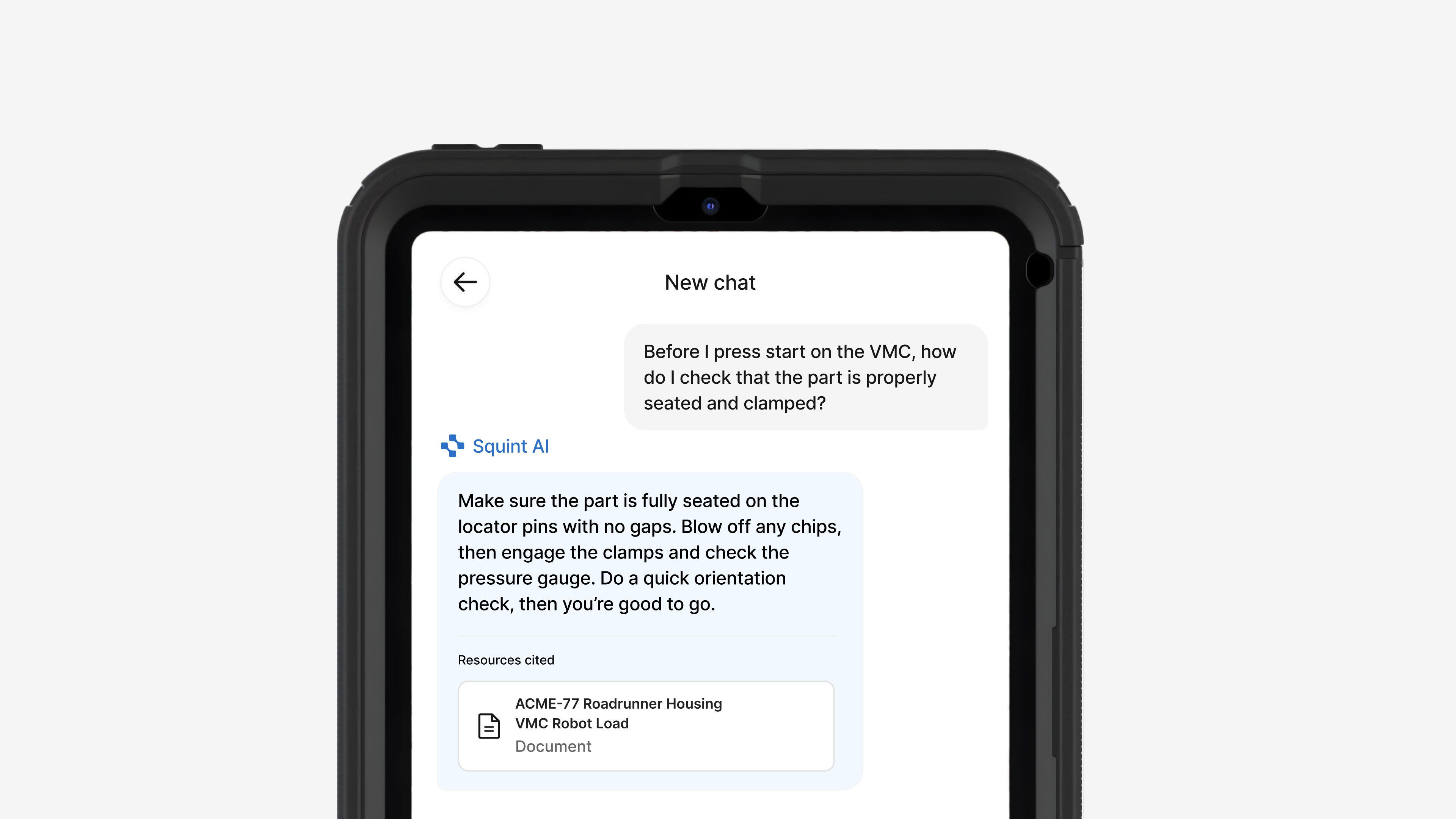 Plus, operators can ask Squint a question in plain language and get an answer pulled straight from the documents and procedures you've uploaded. All things a PDF or a piece of paper could never do.